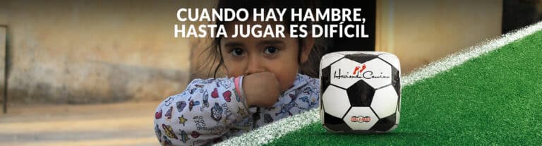 “Con hambre no se puede crecer, con hambre no se puede estudiar ni aprender. Con hambre no se puede disfrutar. Con hambre no se puede jugar”, este es el mensaje detrás de la campaña que tiene como protagonista a una pelota cuadrada.